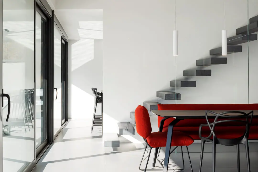 - Estética moderna: La combinación de peldaños flotantes con iluminación LED integrada en el pasamanos aporta un toque contemporáneo y sofisticado al espacio.